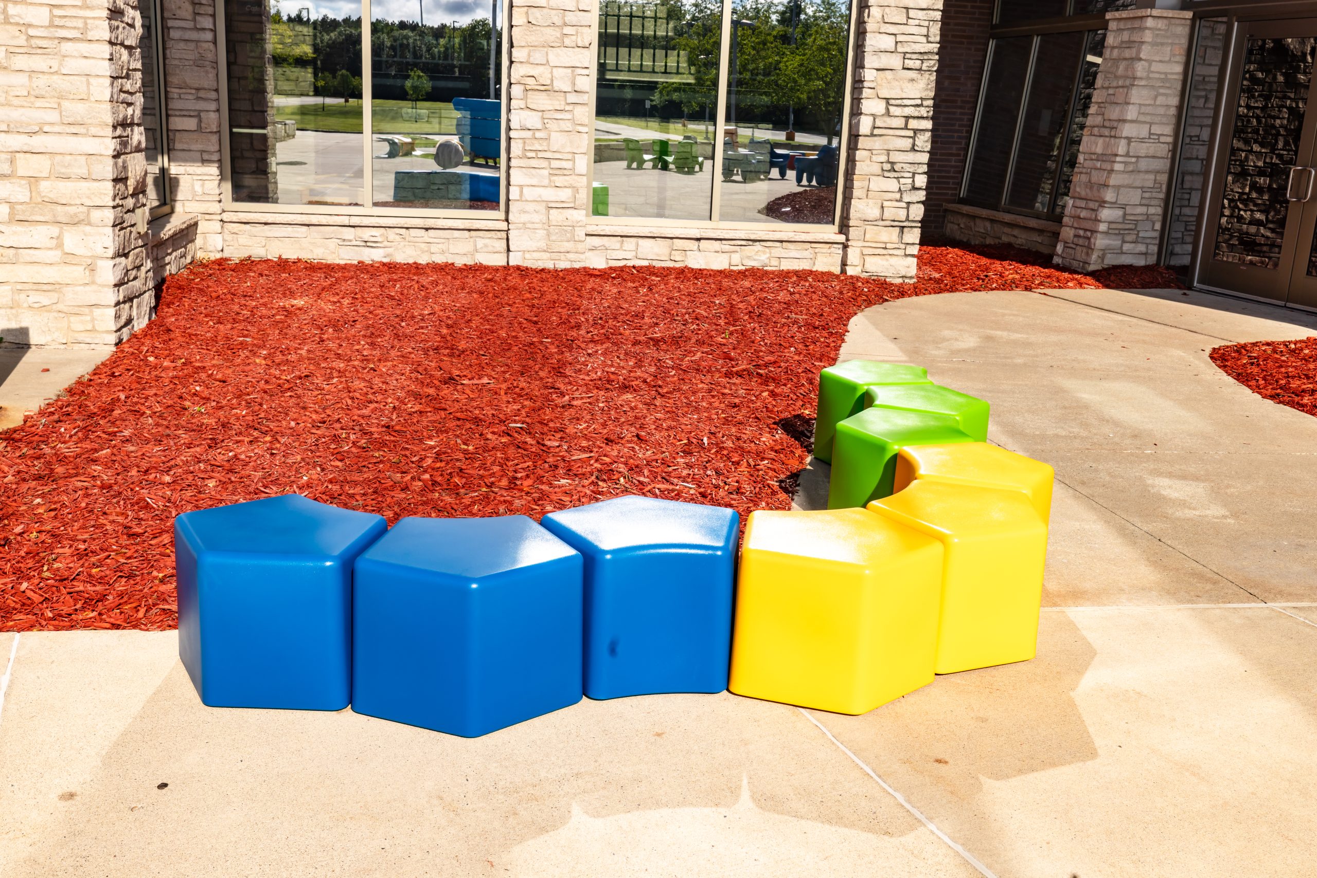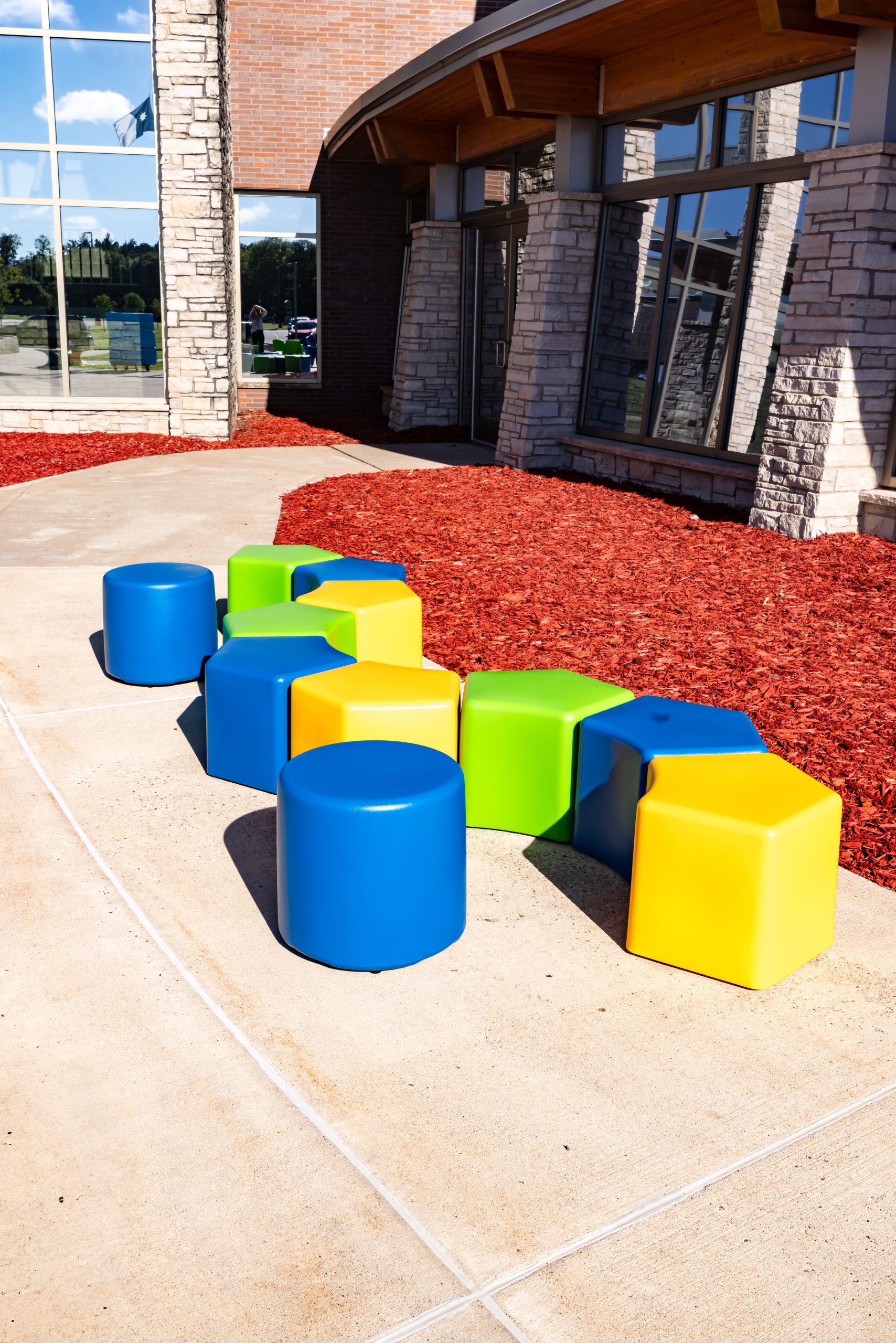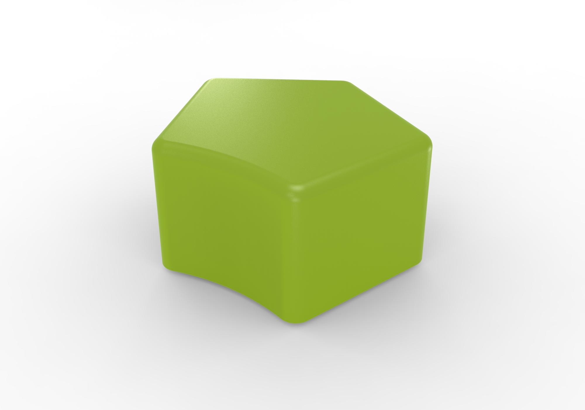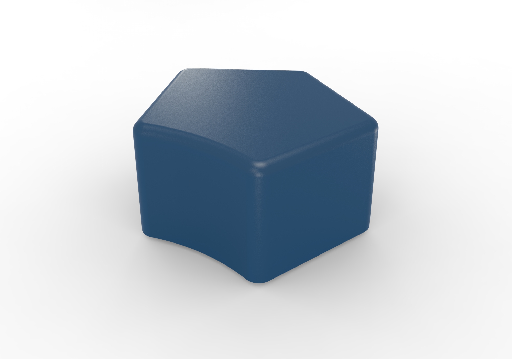 The Curved Pentagon loves company! This uniquely shaped seating works perfectly in groups of three and nine! However, this is a versatile shape! You can also arrange them in a serpentine layout to best utilize the layout of your indoor and outdoor spaces. Use the Curved Pentagon as a seat, table or ottoman. Also works great as seating around a table. Perfect for high traffic spaces like schools, libraries, healthcare, museums, retail and more. Featuring a durable and waterproof polyethylene shell – like a high-end cooler or kayak. Available in 12” and 16” heights. Includes Santoprene rubber legs suitable for year-round outdoor use.