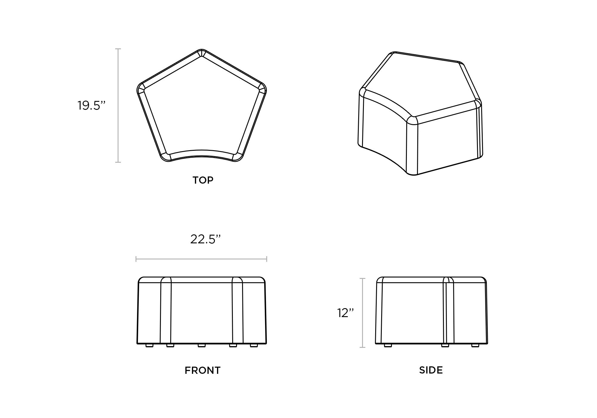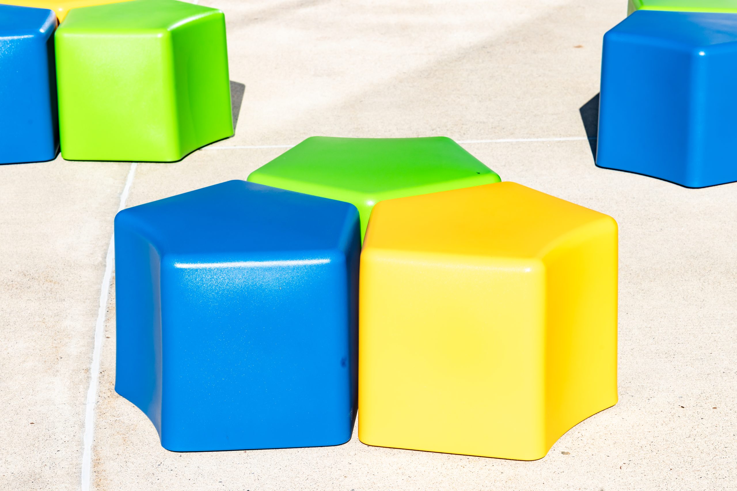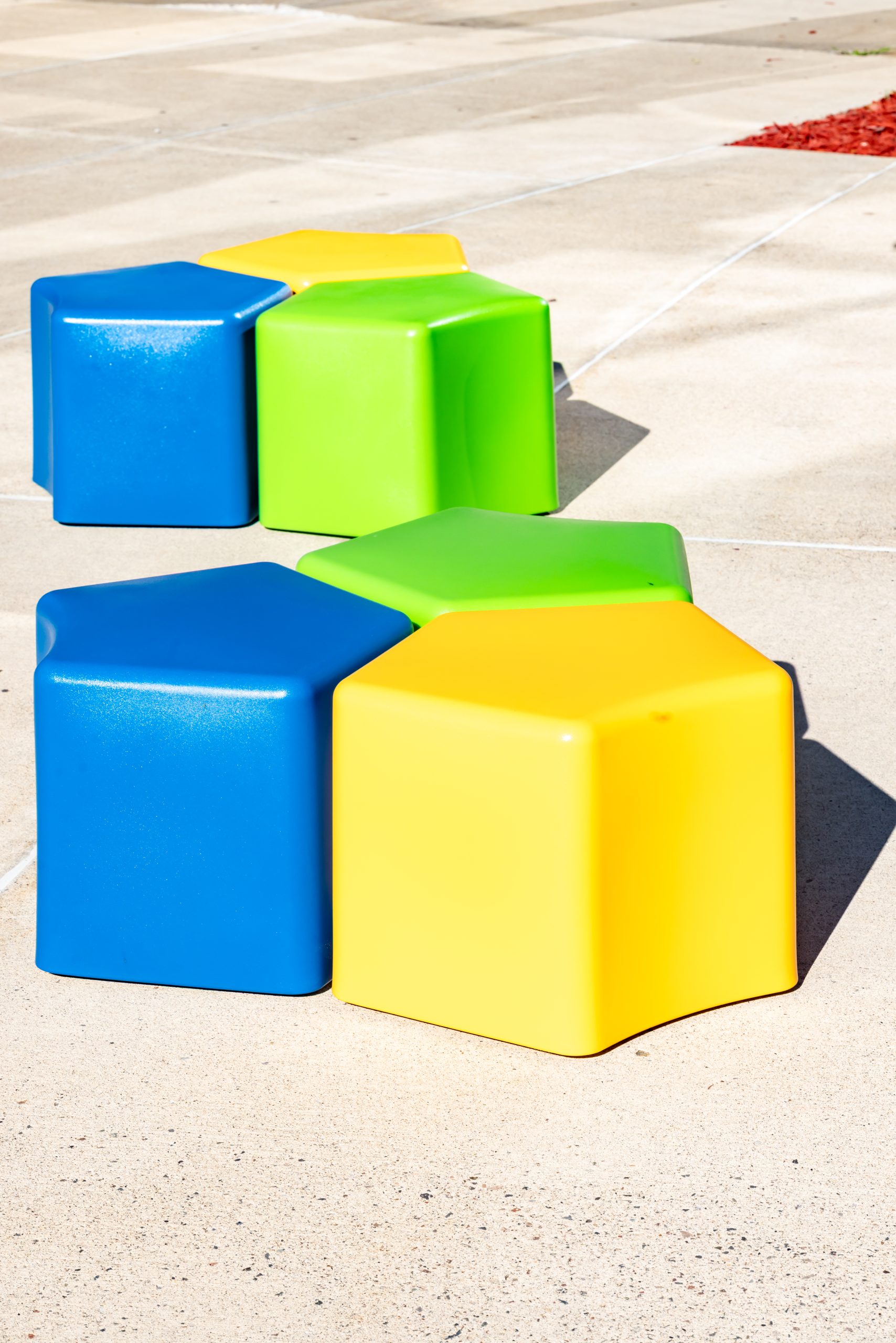 The Curved Pentagon loves company! This uniquely shaped seating works perfectly in groups of three and nine! However, this is a versatile shape! You can also arrange them in a serpentine layout to best utilize the layout of your indoor and outdoor spaces. Use the Curved Pentagon as a seat, table or ottoman. Also works great as seating around a table. Perfect for high traffic spaces like schools, libraries, healthcare, museums, retail and more. Featuring a durable and waterproof polyethylene shell – like a high-end cooler or kayak. Available in 12” and 16” heights. Includes Santoprene rubber legs suitable for year-round outdoor use.