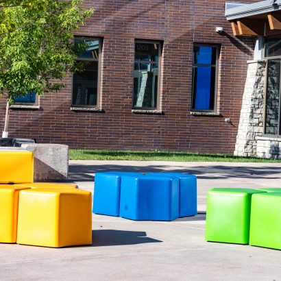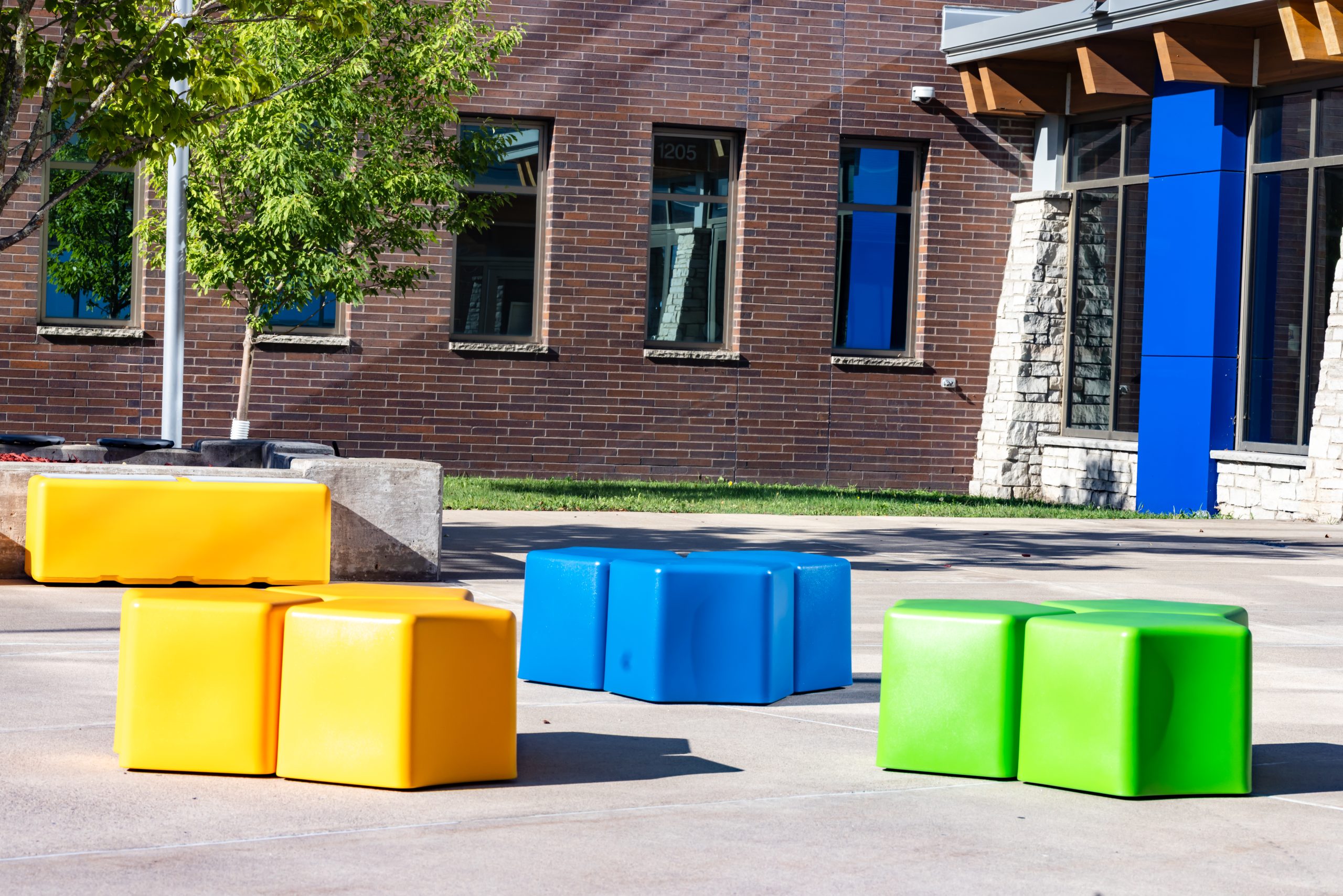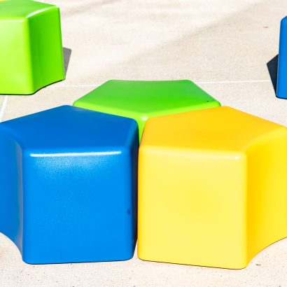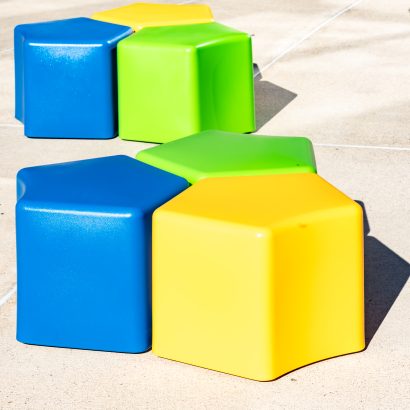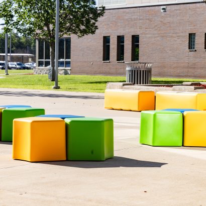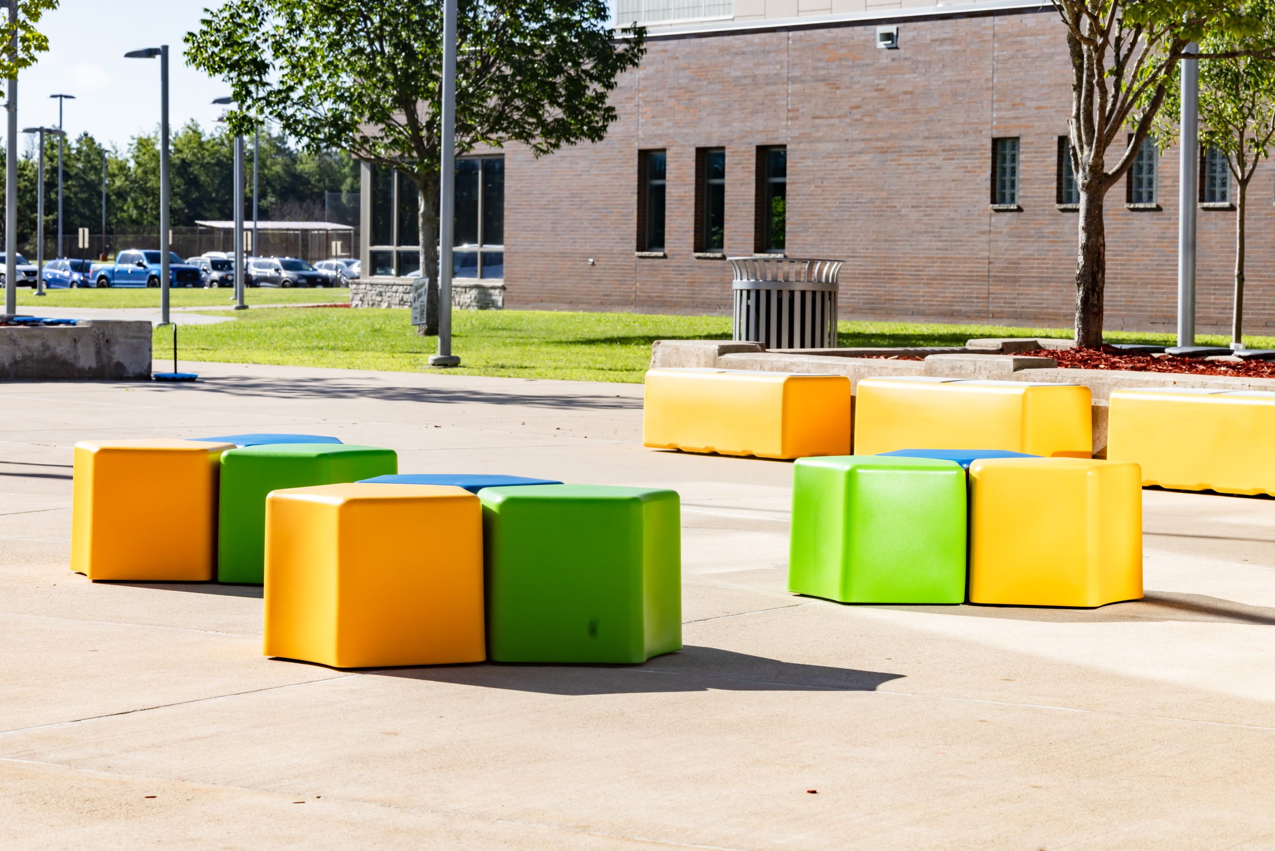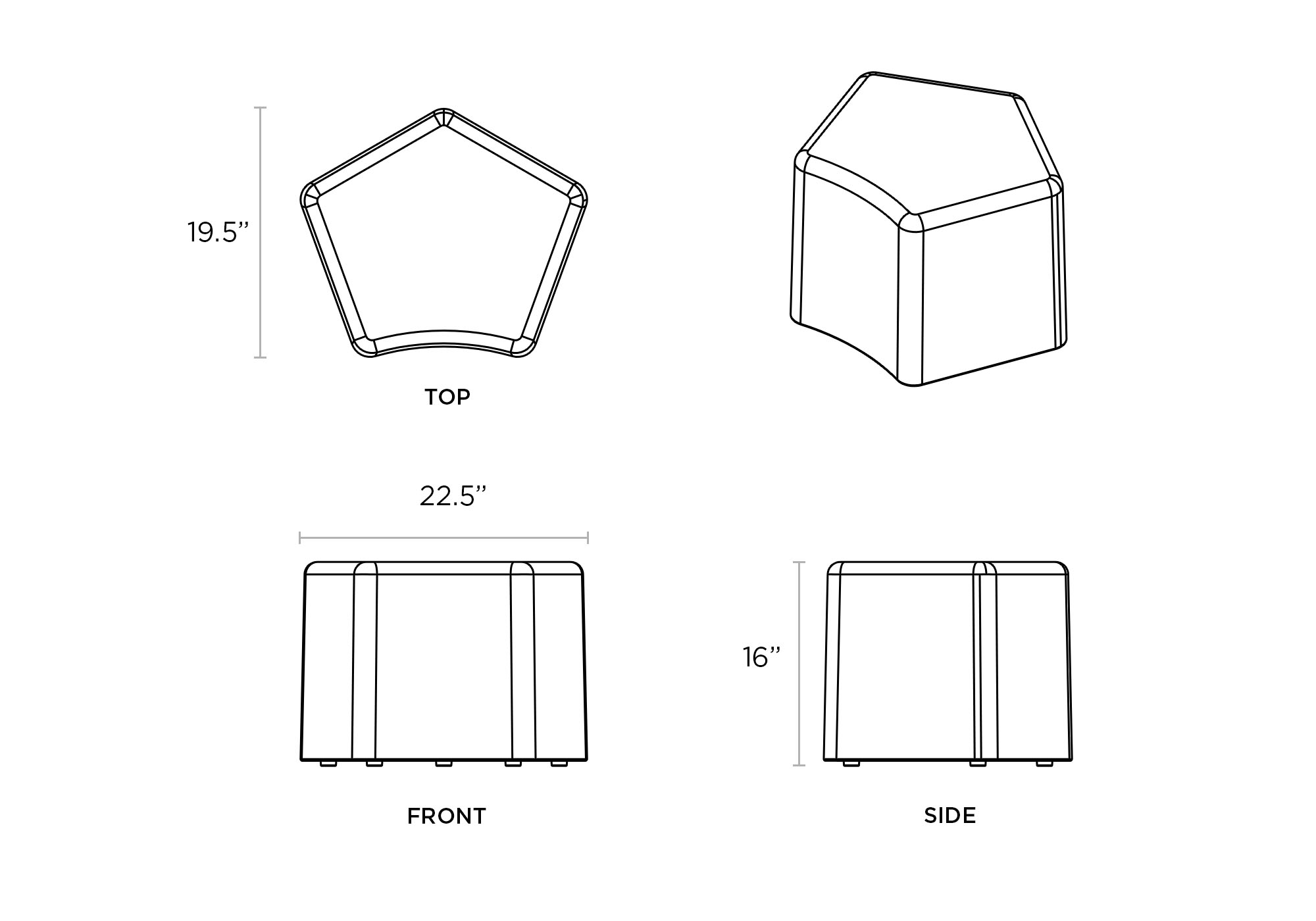 The Curved Pentagon loves company! This uniquely shaped seating works perfectly in groups of three and nine! However, this is a versatile shape! You can also arrange them in a serpentine layout to best utilize the layout of your indoor and outdoor spaces. Use the Curved Pentagon as a seat, table or ottoman. Also works great as seating around a table. Perfect for high traffic spaces like schools, libraries, healthcare, museums, retail and more. Featuring a durable and waterproof polyethylene shell – like a high-end cooler or kayak. Available in 12” and 16” heights. Includes Santoprene rubber legs suitable for year-round outdoor use.