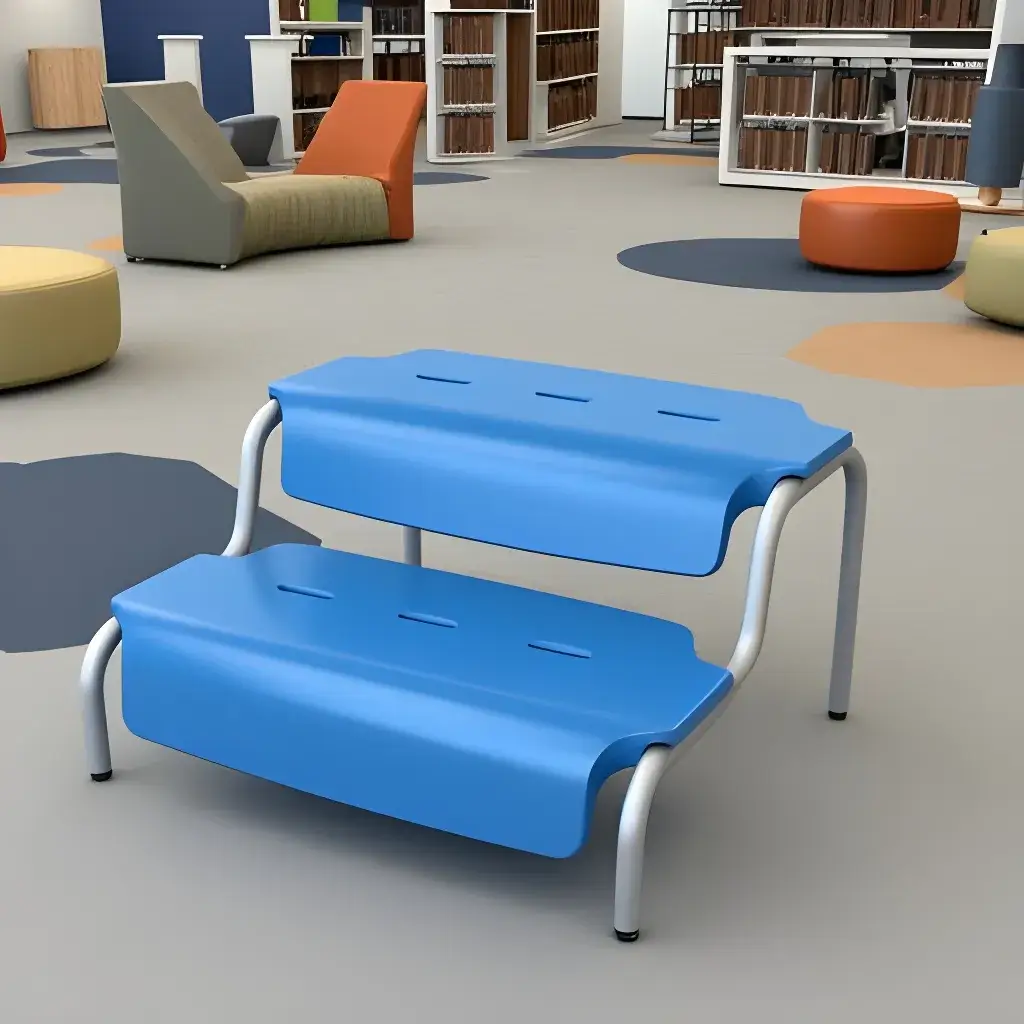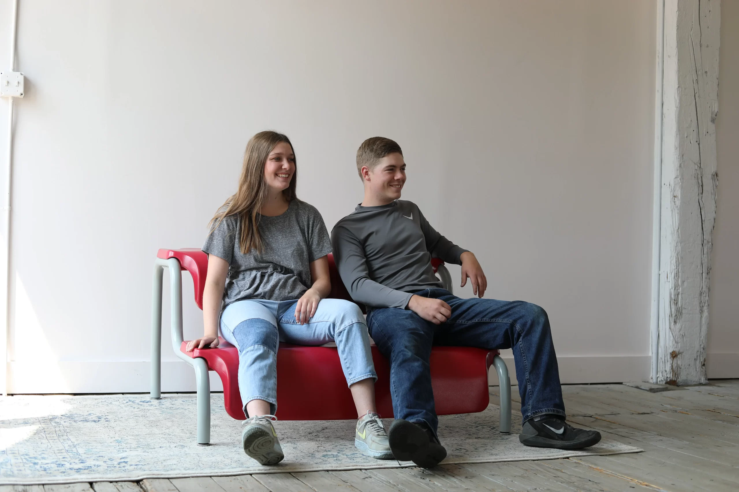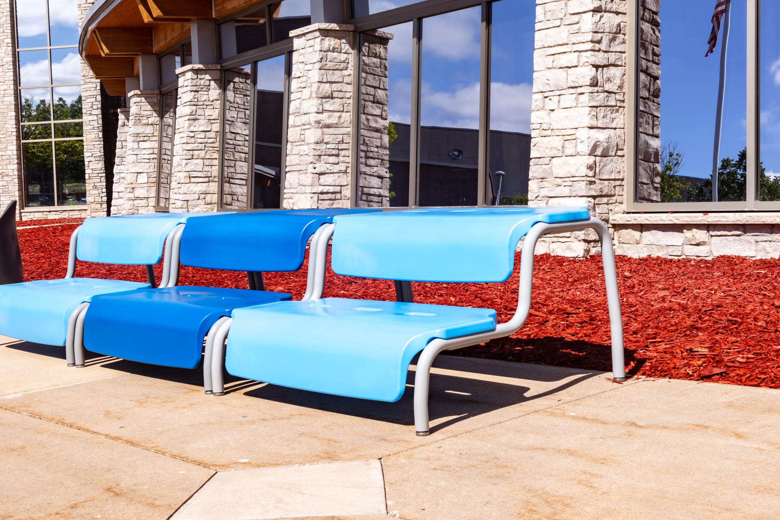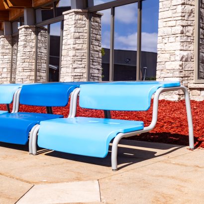 Elevate uses materials that are common in durable outdoor playground structures: hard polyethylene seats and powder coated steel frames. These materials hold up foot traffic and energetic students, while making sure sanitizing is a breeze. The open frame design ensures the cleaning crew can easily sweep underneath, while liquid spills and grime don’t get trapped behind or between the furniture. People are known to drop things and with Elevate it is easy to reach under the frame to retrieve dropped items. Our customers asked for seats that were extra wide so went with 47” wide seats and now two people can sit side-by-side without having to be crunched together. Customers wanted seating that could be moved, stacked, and easier to fit through doorways – Elevate delivers and you can even stack two units to make some extra space when needed. If you desire cushioning we sized the Tenjam Rad Pad cushion to perfectly fit on the Elevate Seats and you can store the Rad Pads under the Elevate frame.