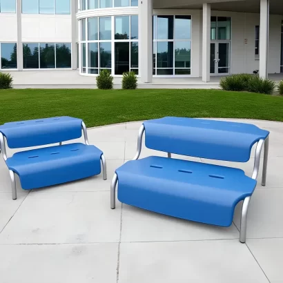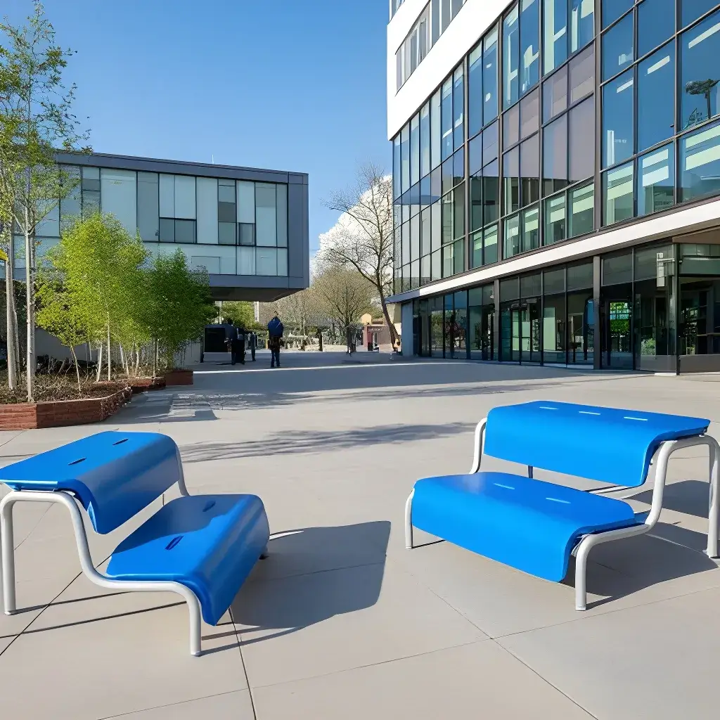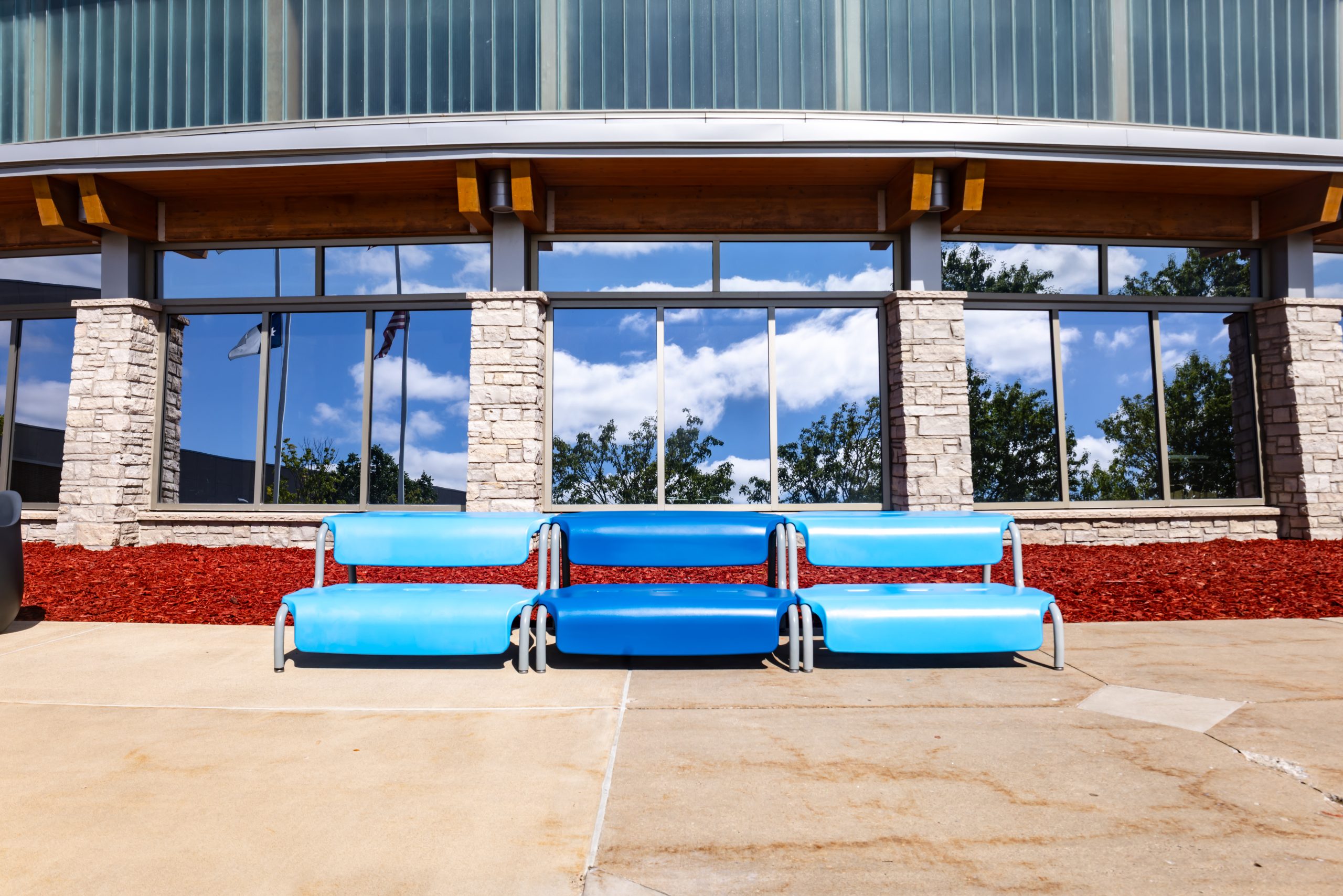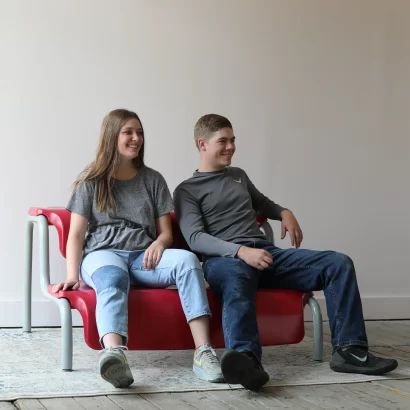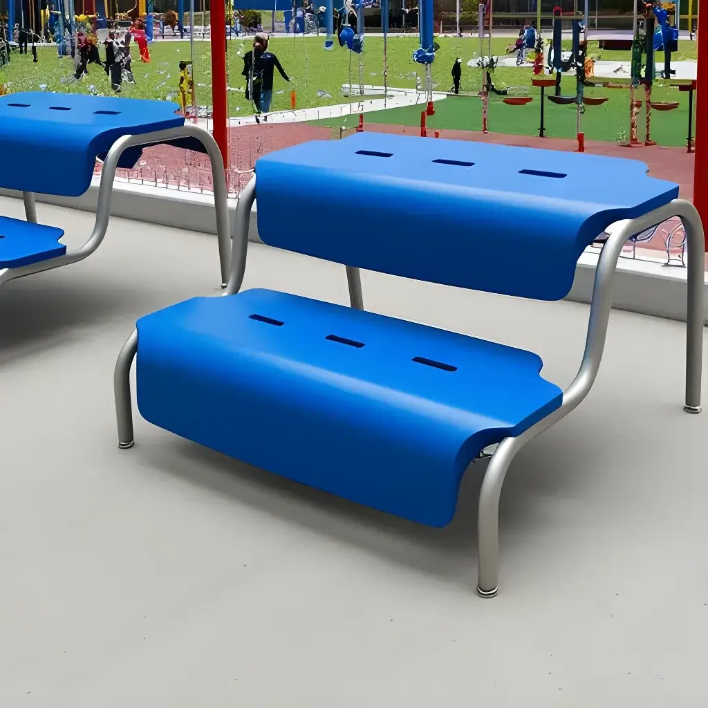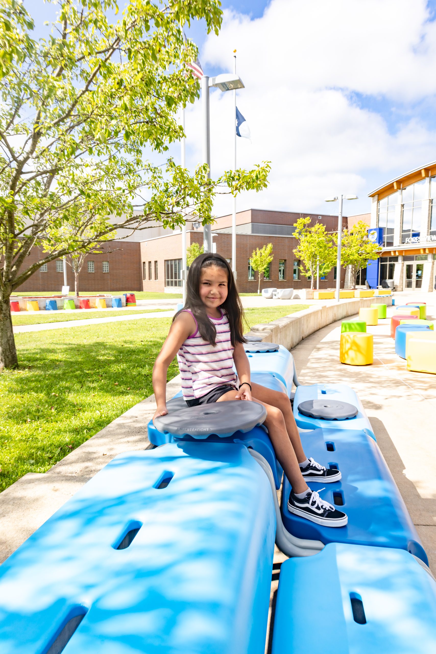 Elevate uses materials that are common in durable outdoor playground structures: hard polyethylene seats and powder coated steel frames. These materials hold up foot traffic and energetic students, while making sure sanitizing is a breeze. The open frame design ensures the cleaning crew can easily sweep underneath, while liquid spills and grime don’t get trapped behind or between the furniture. People are known to drop things and with Elevate it is easy to reach under the frame to retrieve dropped items. Our customers asked for seats that were extra wide so went with 47” wide seats and now two people can sit side-by-side without having to be crunched together. Customers wanted seating that could be moved, stacked, and easier to fit through doorways – Elevate delivers and you can even stack two units to make some extra space when needed. If you desire cushioning we sized the Tenjam Rad Pad cushion to perfectly fit on the Elevate Seats and you can store the Rad Pads under the Elevate frame.