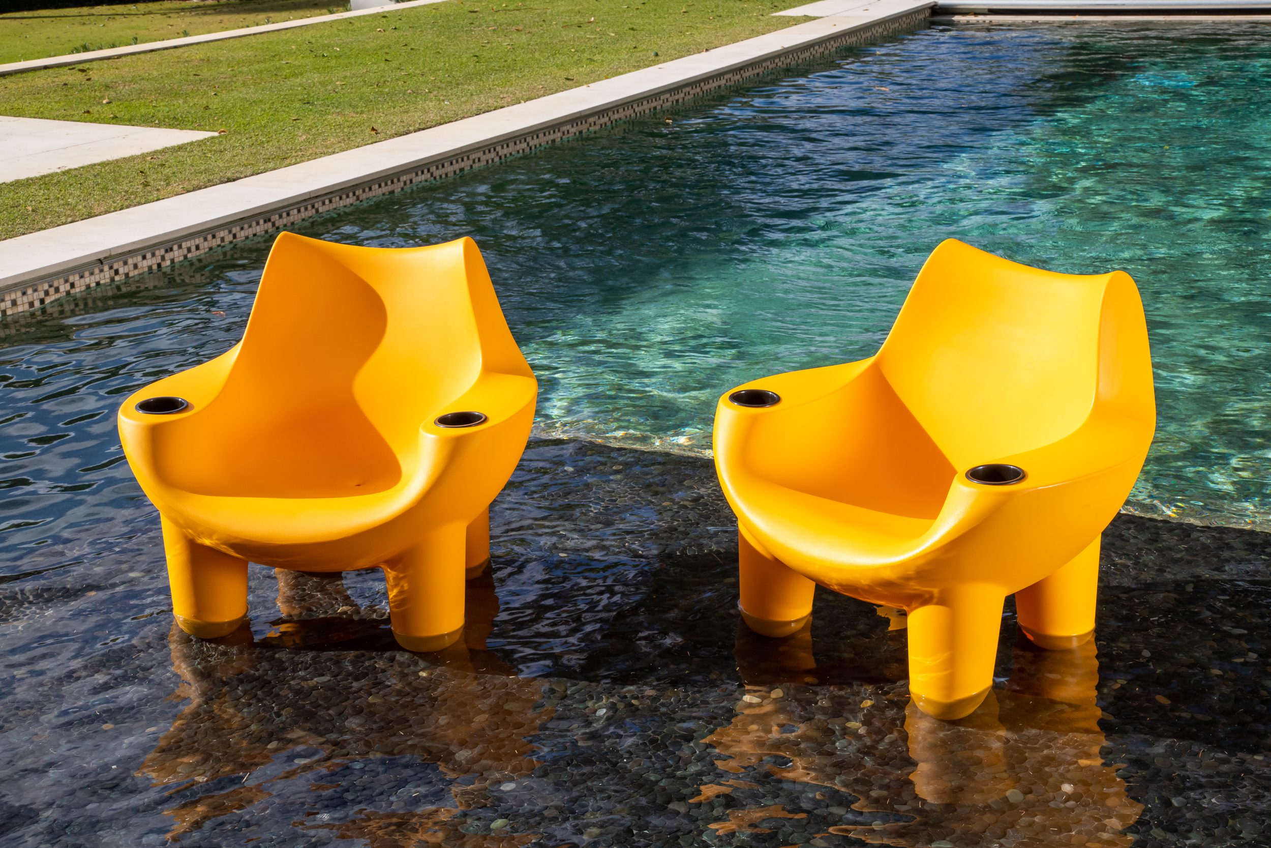 Crafted from 100% recyclable polyethylene, the SPLASH Series Mibster Chair ensures stability and support on various surfaces. Whether placed in the pool, on the deck, or patio, you can rely on its stable foundation for a secure seating experience. Don’t let the modern design fool you, the Mibster’s molded seat cradles your body in comfort. Sink into the contoured seat and experience pure relaxation as you unwind by the water. This wildly fun chair boasts comfortable armrests and two built-in cup holders (available in black or white) allowing you to keep your favorite poolside refreshments close at hand as you lounge. Whether you’re enjoying a cold beverage, snack, or simply unwinding, the integrated cupholder and armrests ensure that everything you need is right at your fingertips.