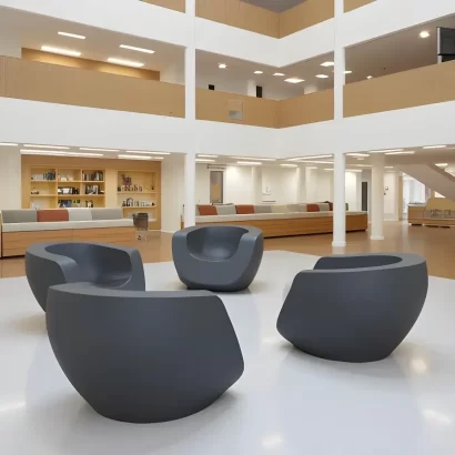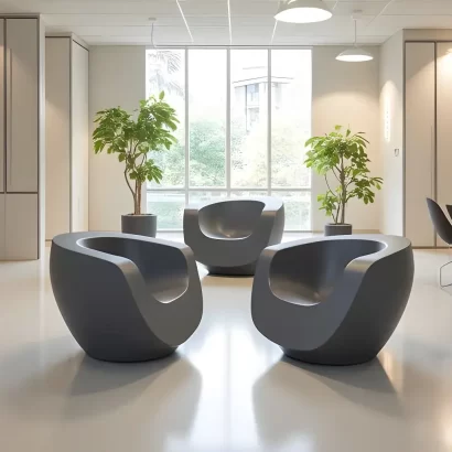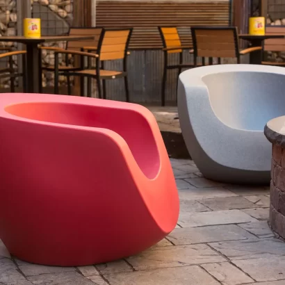 A bold statement, this retro-futuristic chair is like a work of art. With fluid, curving lines – as though carved from a single block.