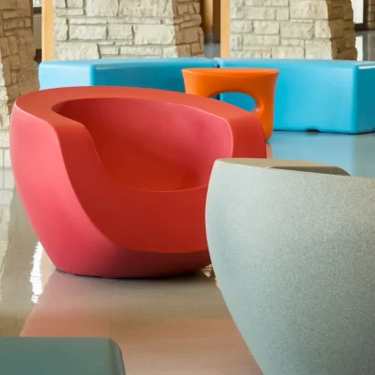 The chair is exceptionally strong and has a weight capacity of more than 500 lbs. Perfect for indoor and outdoor high traffic spaces at schools, hotels, restaurants, museums and more. The designs also look great in a residential setting.