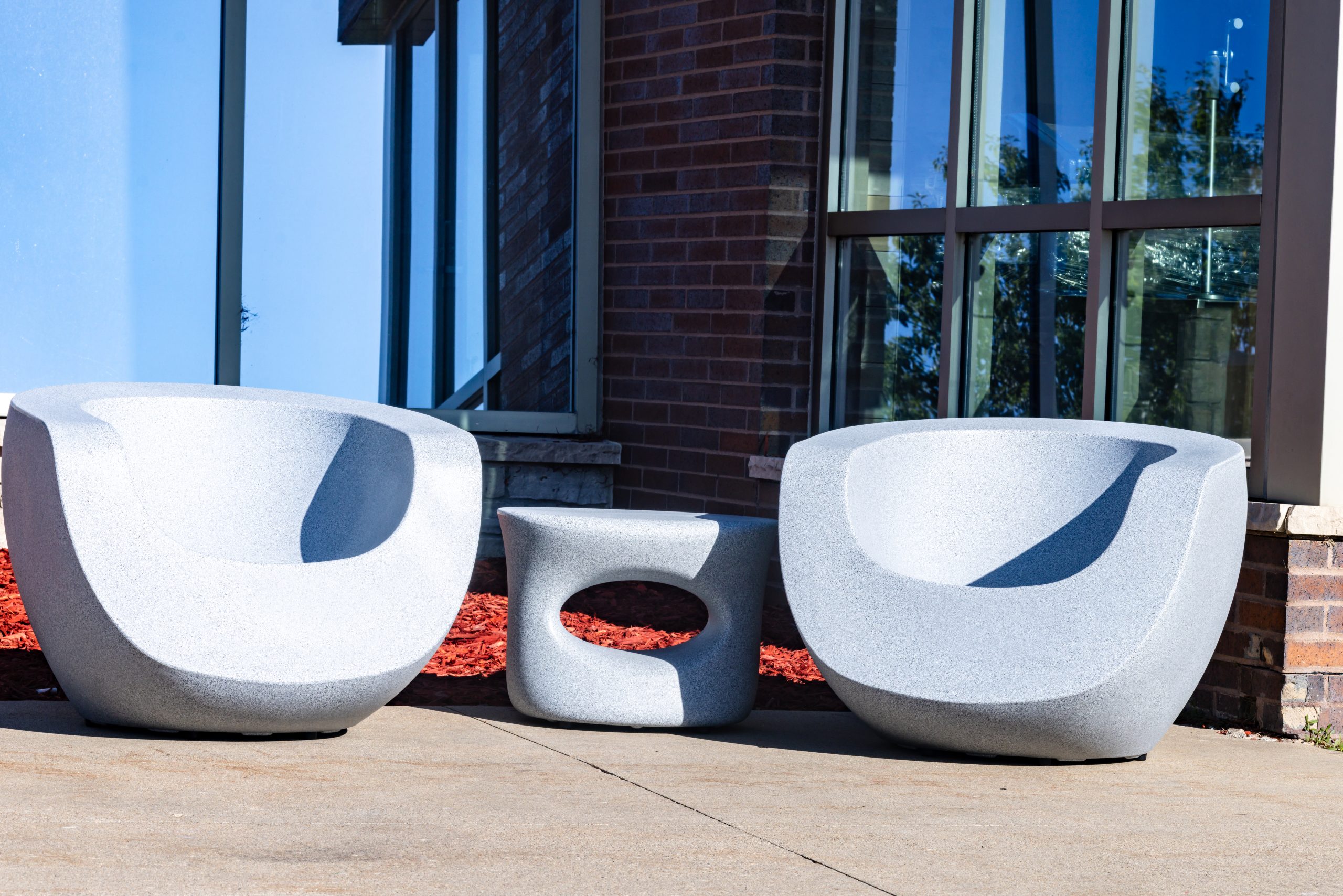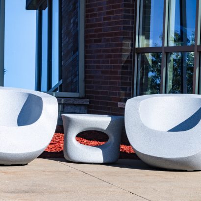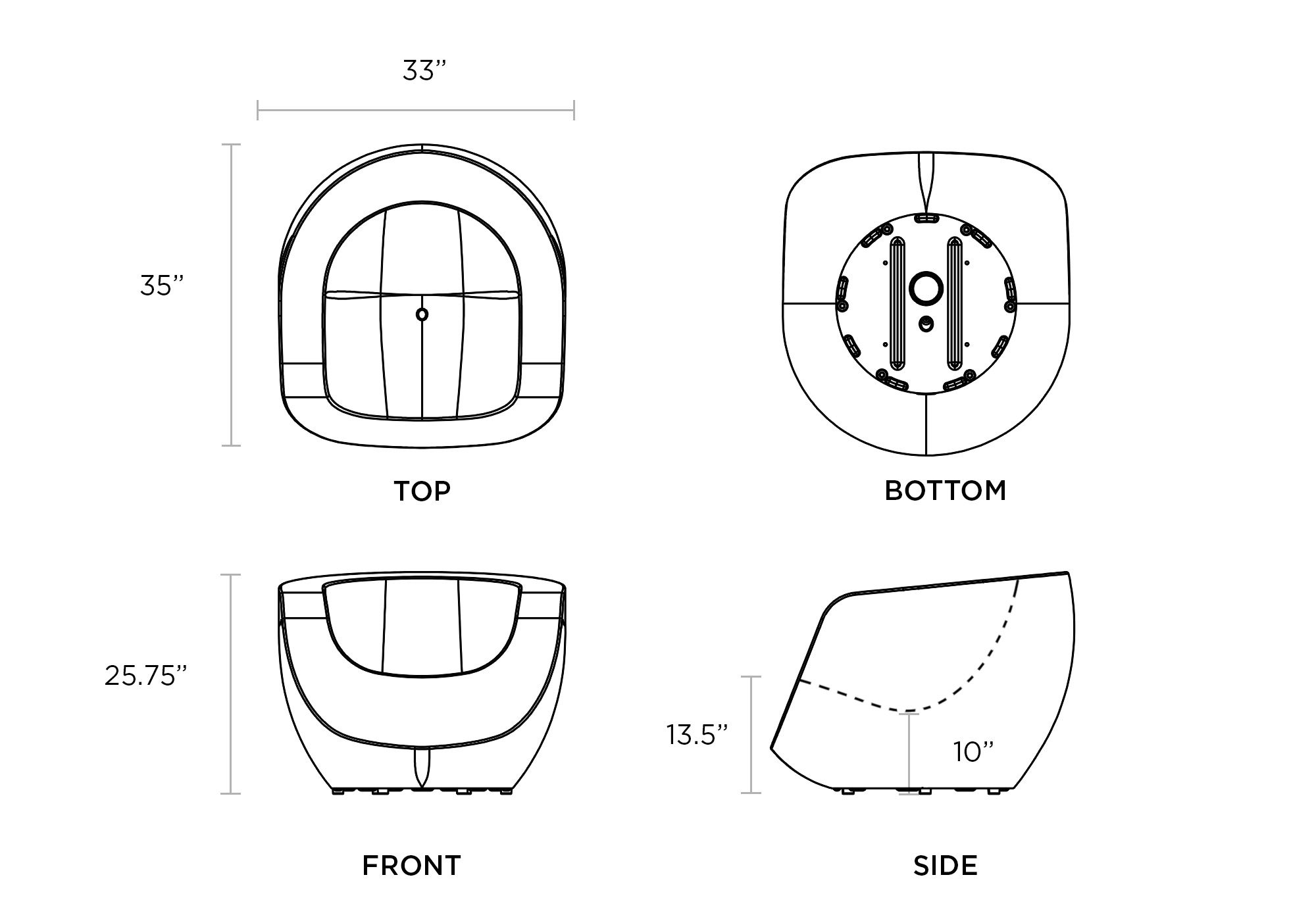 Item # 22102BWC_ _: Moon Chair with Weightcap option, 9″ Seat Height, 32 lbs. If the weightcap option is selected a screw port is added to the bottom of the chair so gravel can be funneled into the product core. Add up to 100 lbs of pea-gravel for a product weight up to 132 lbs.