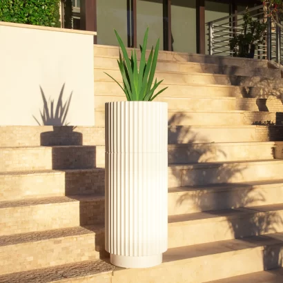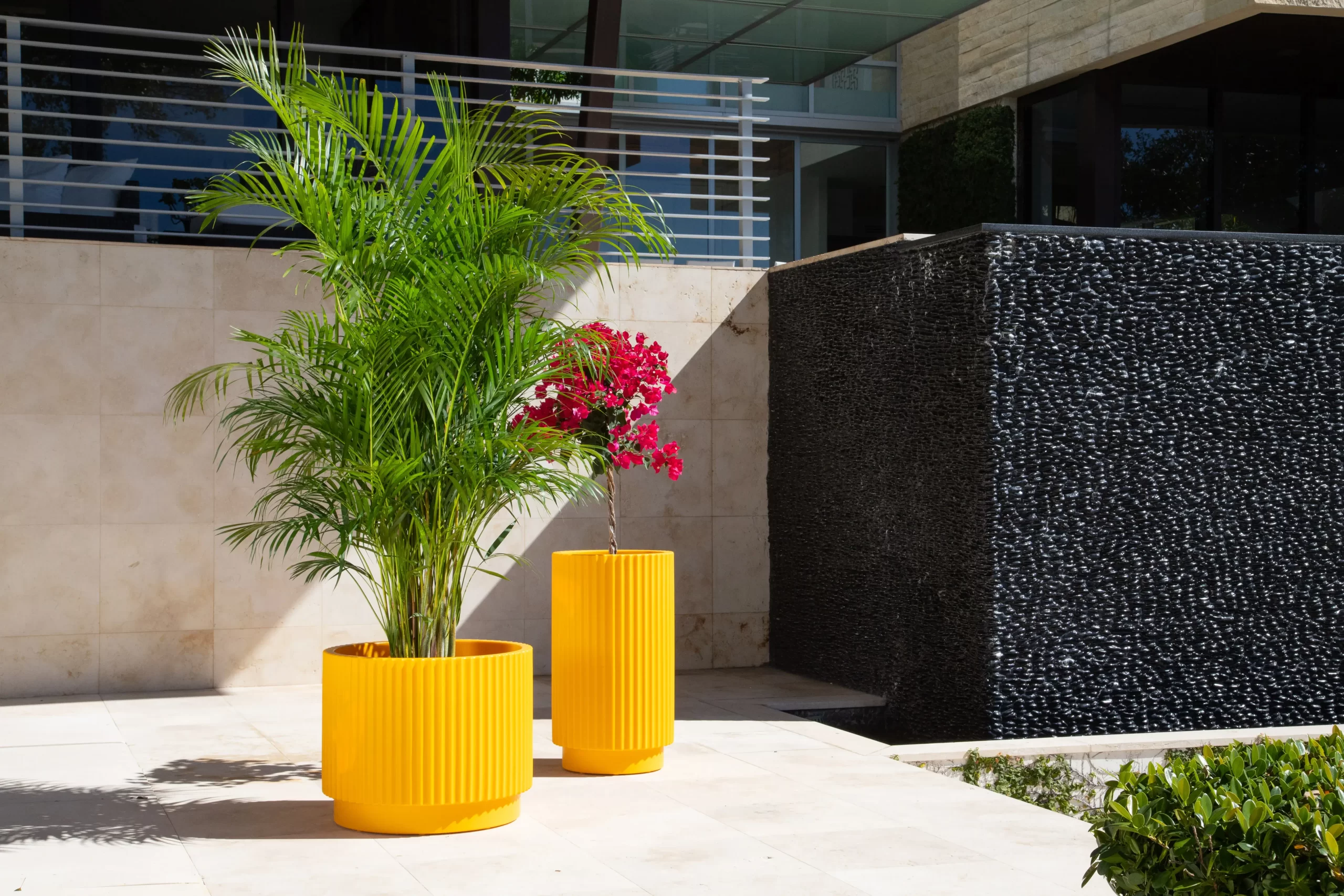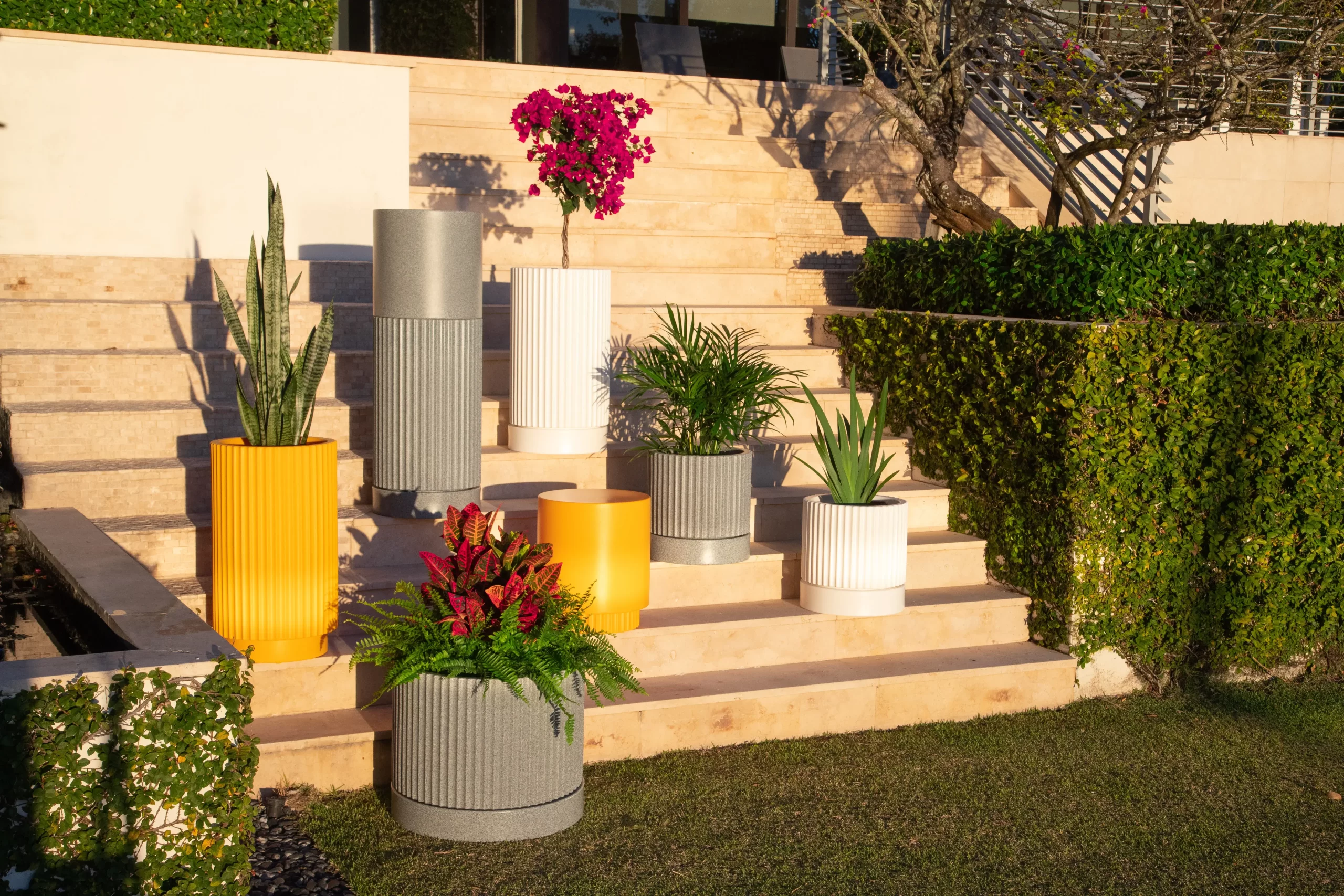 Beyond their aesthetic appeal, these sleek planters offer practical features that make plant care a breeze. Proudly made in the USA, using 100% recyclable polyethylene material, not only are these planters lightweight and easy to maneuver, but they also exhibit exceptional weather resistance. Whether facing scorching sun, sandy environments, heavy rain, or even snow, these planters are built to withstand the elements and stand the test of time. The high-quality construction ensures long-lasting performance, allowing you to enjoy their beauty (and your green thumb) for years to come.