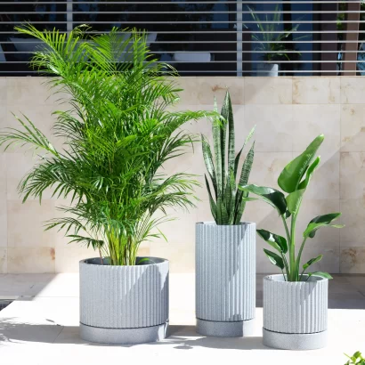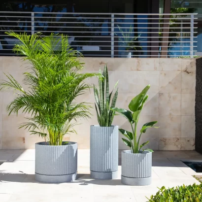 Designed with practicality in mind, each planter features a drain hole on the bottom to prevent water and rain overflow. For outdoor use, where rainwater can freely enter the planter, there’s no need for a water-catching tray. However, if you’re placing the planters where you need to prevent water overflow from draining onto the floor, an accompanying tray is recommended.