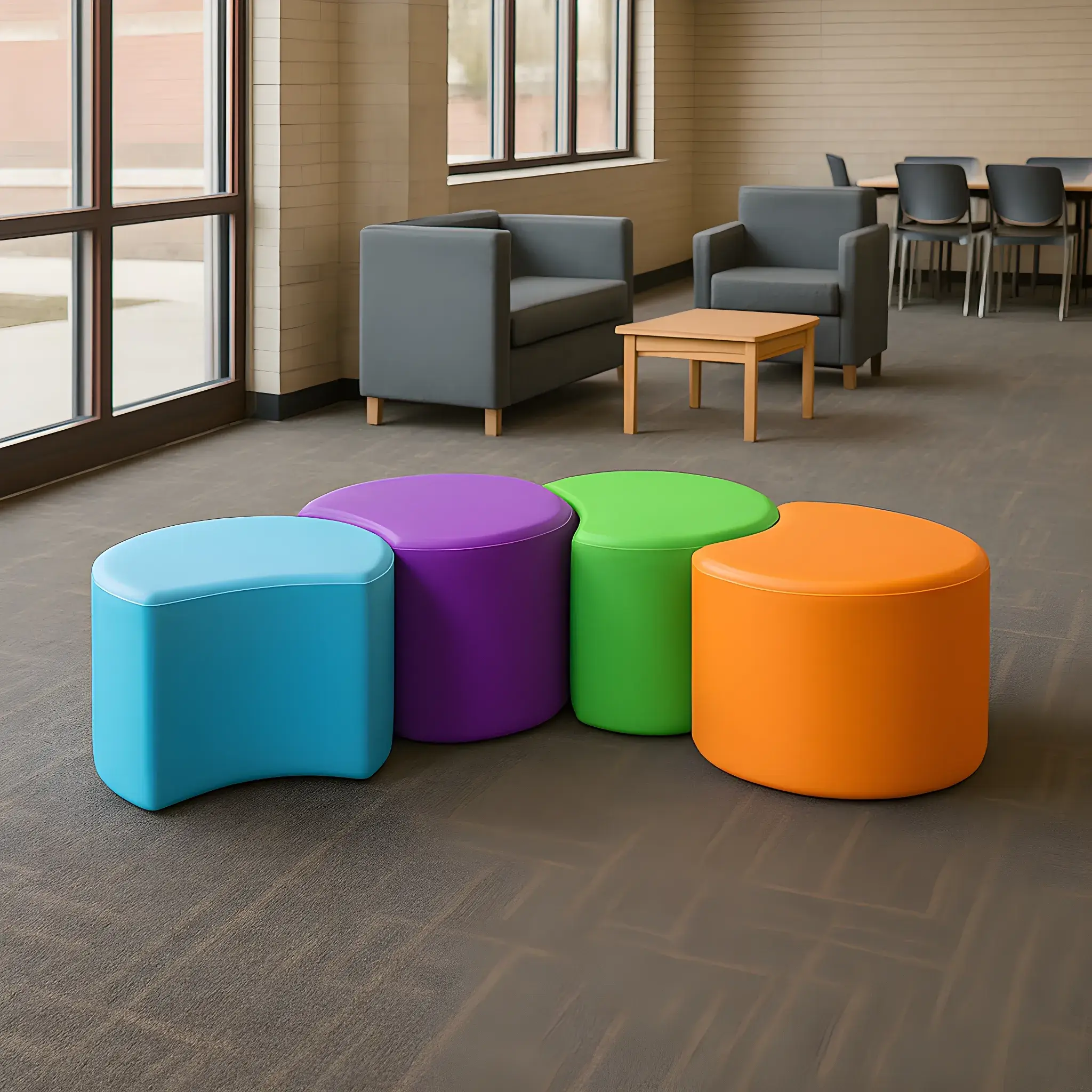 Use the Crescent as a stool, side table, or ottoman. A fun modular shape that can be arranged in any way that best fits your space. Two sizes available.