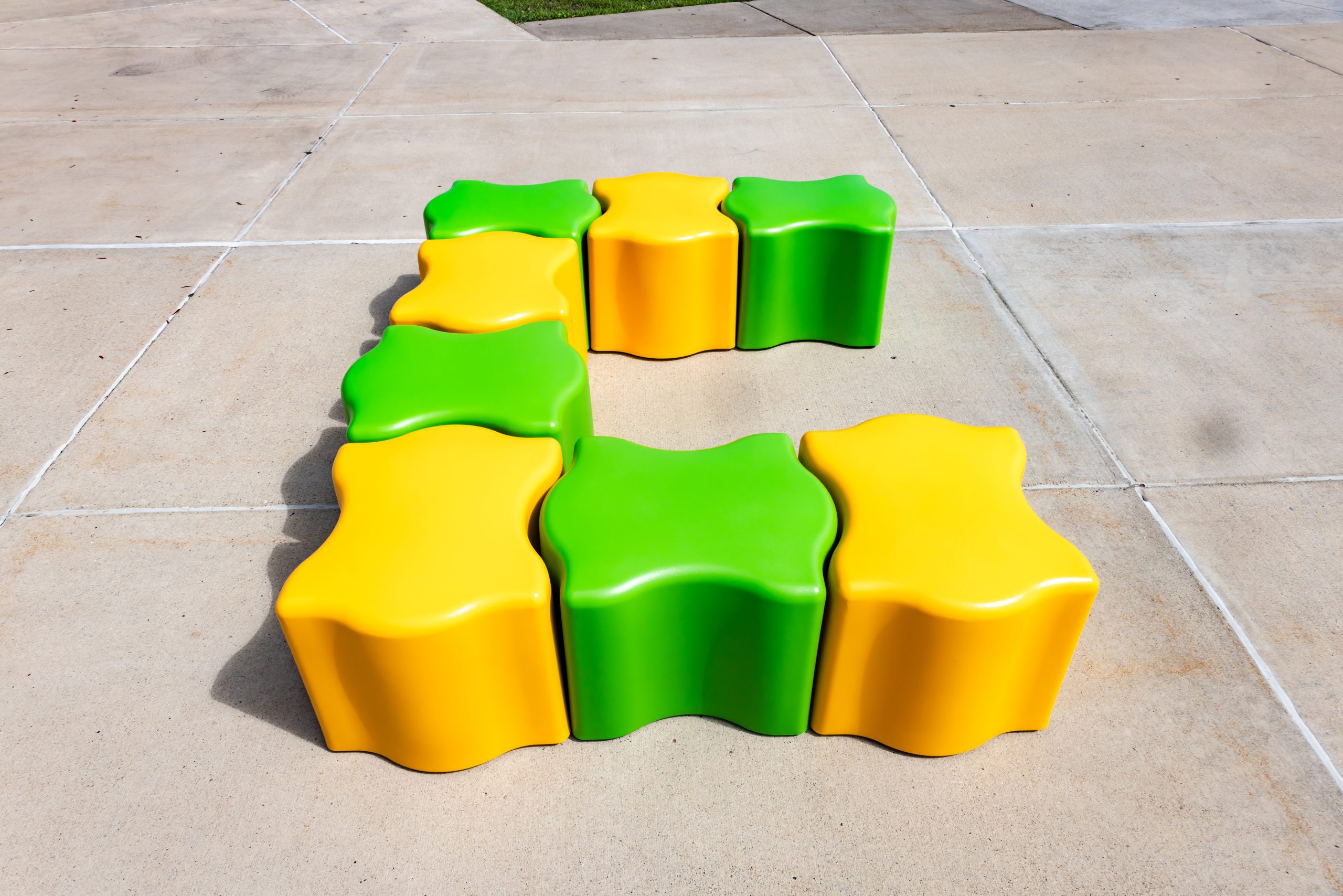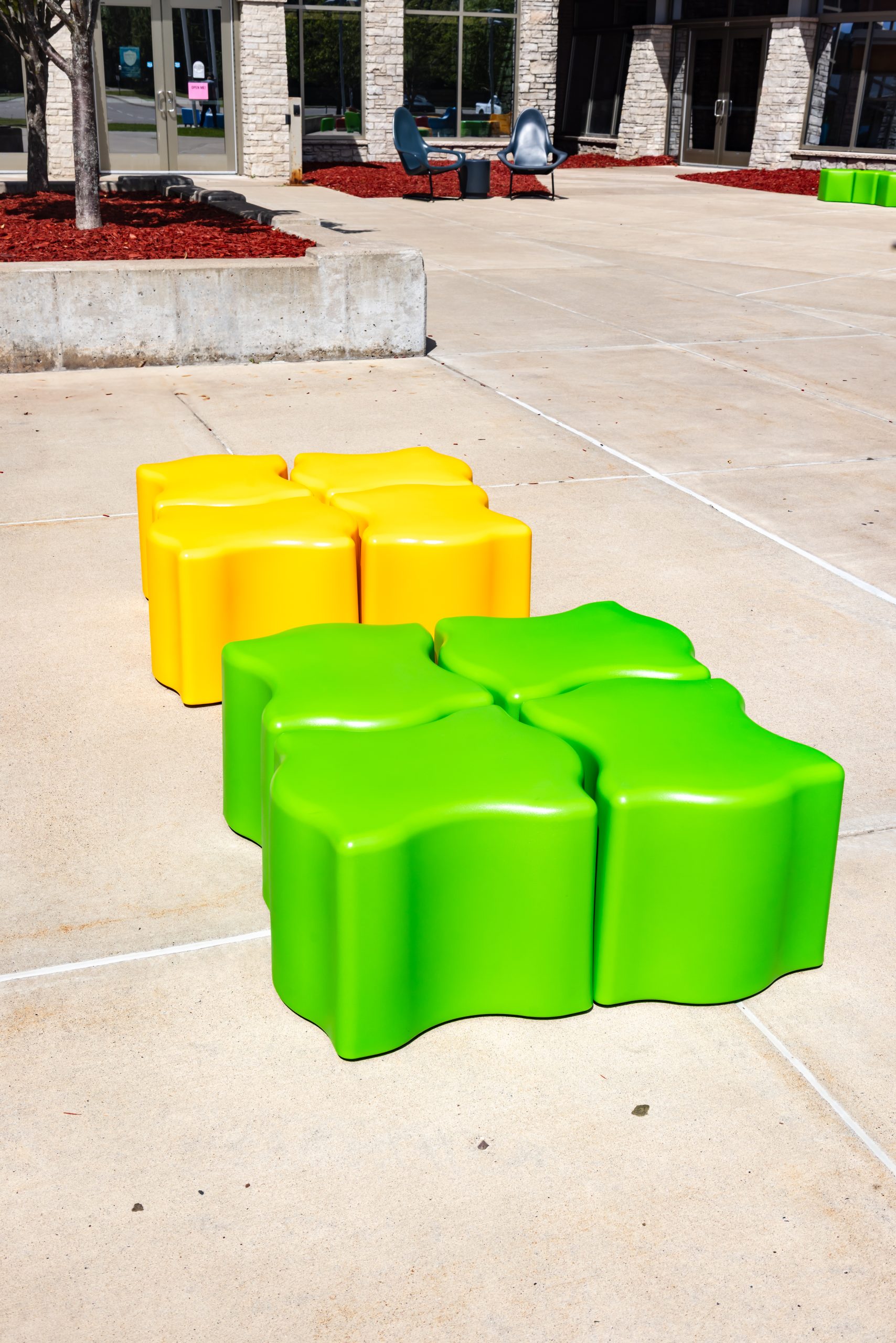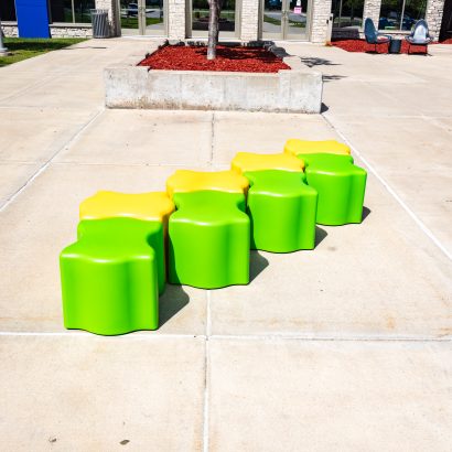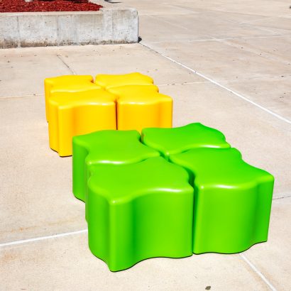 Puzzle piece seating that fits perfectly together with ease! The Puzzler was designed to be used for seating, side tables or ottomans. These pieces can easily slide together and pull apart to create the configuration to best fit your space. Any arrangement you need, your puzzle has been solved! Perfect for high traffic spaces like schools, libraries, healthcare, museums, retail and more. Featuring a durable and waterproof polyethylene shell – like a high-end cooler or kayak. Available in 12” and 16” heights. Includes Santoprene rubber legs suitable for year-round outdoor use.