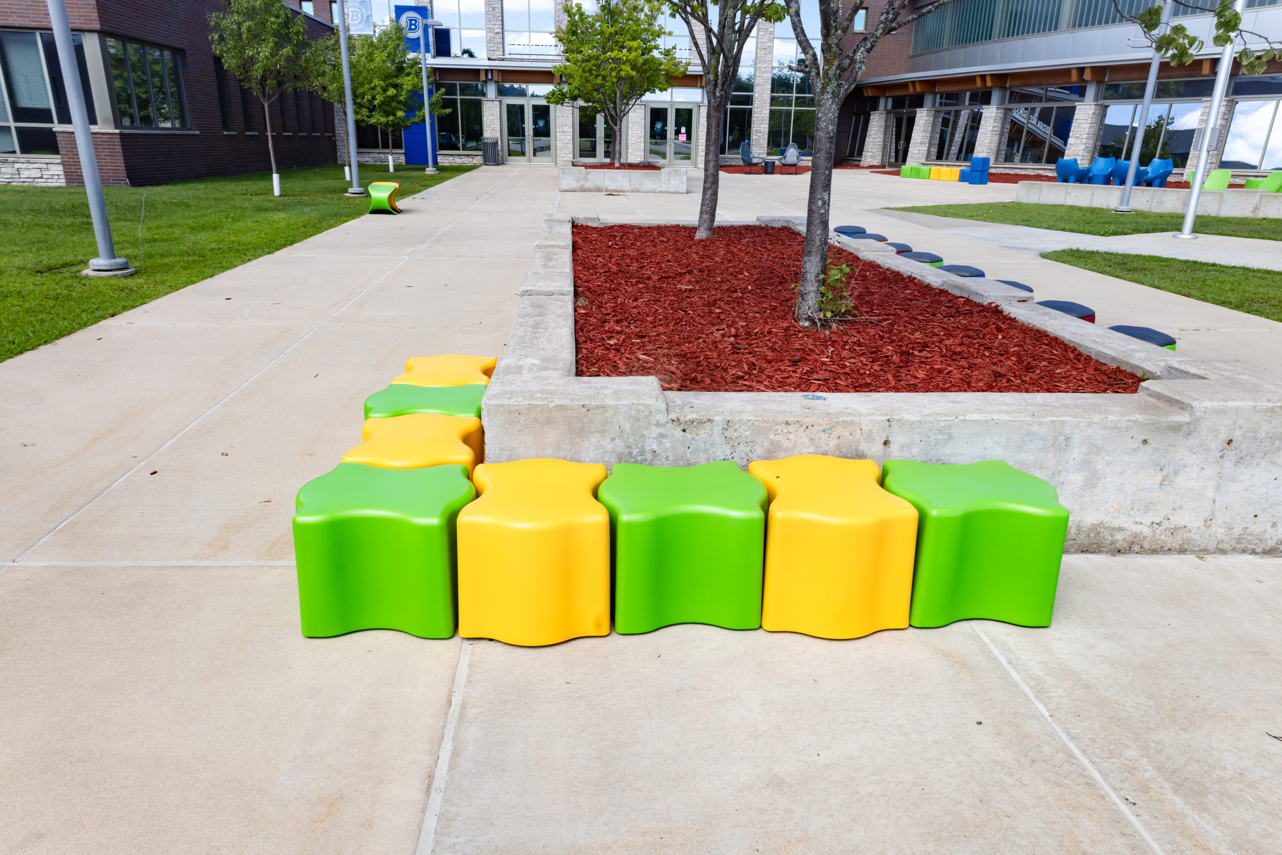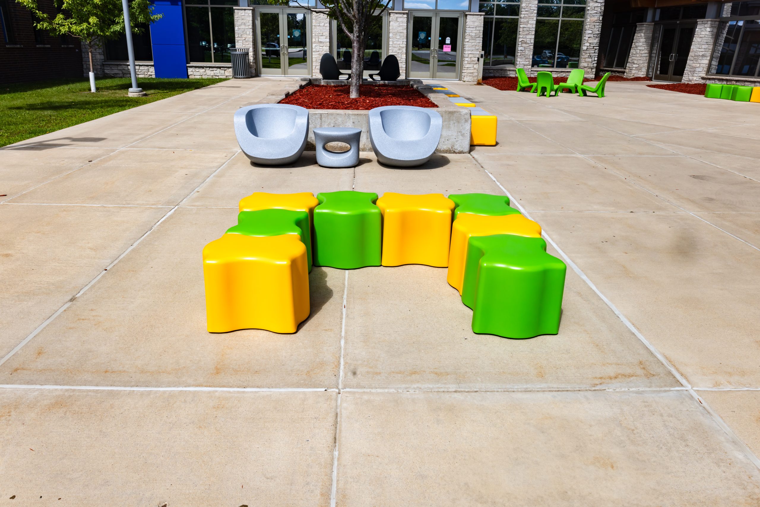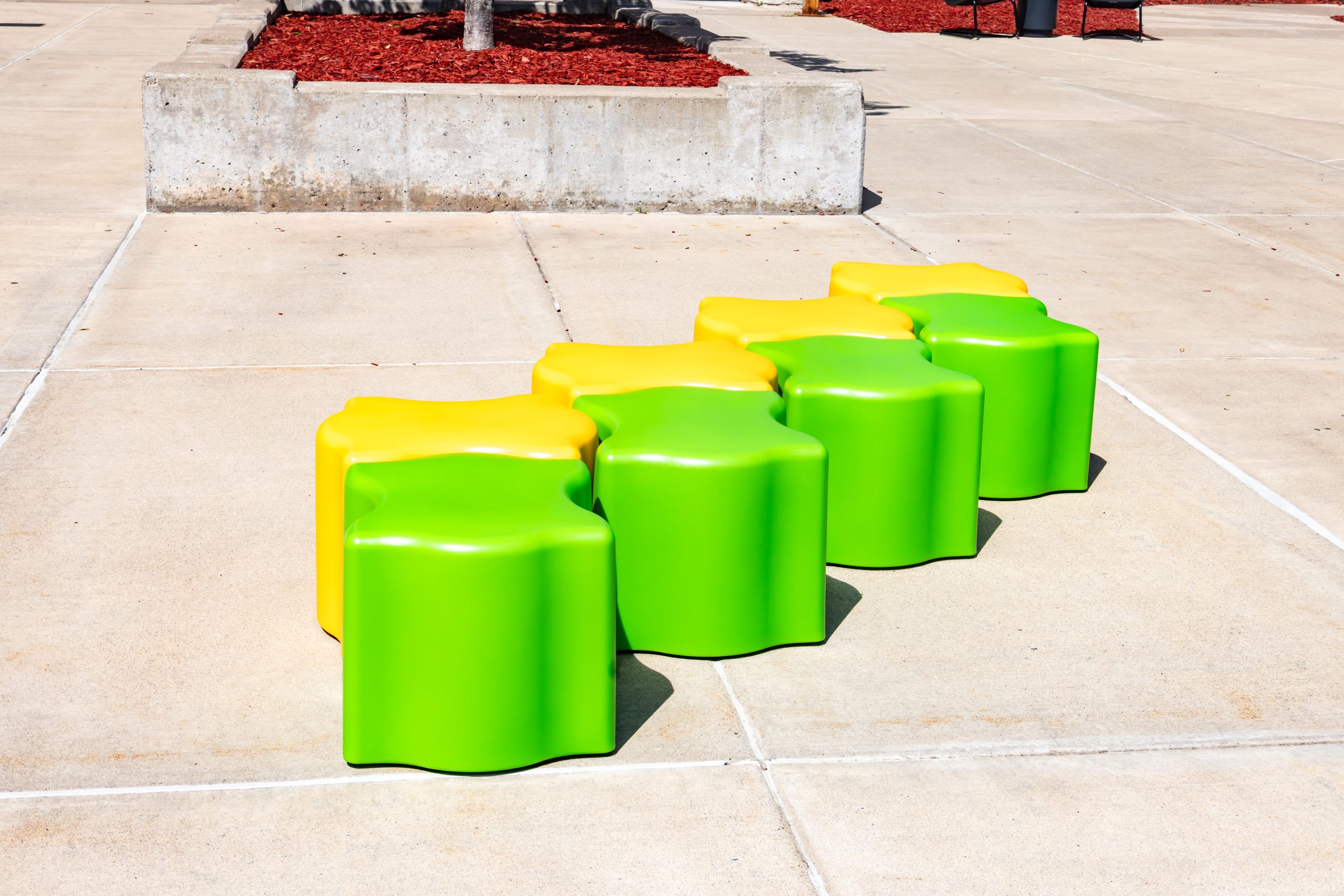 Puzzle piece seating that fits perfectly together with ease! The Puzzler was designed to be used for seating, side tables or ottomans. These pieces can easily slide together and pull apart to create the configuration to best fit your space. Any arrangement you need, your puzzle has been solved! Perfect for high traffic spaces like schools, libraries, healthcare, museums, retail and more. Featuring a durable and waterproof polyethylene shell – like a high-end cooler or kayak. Available in 12” and 16” heights. Includes Santoprene rubber legs suitable for year-round outdoor use.