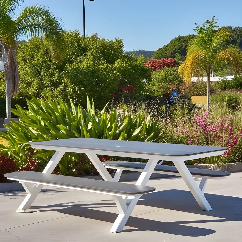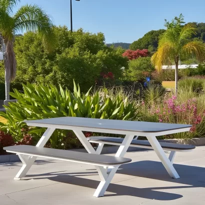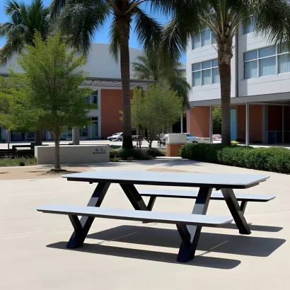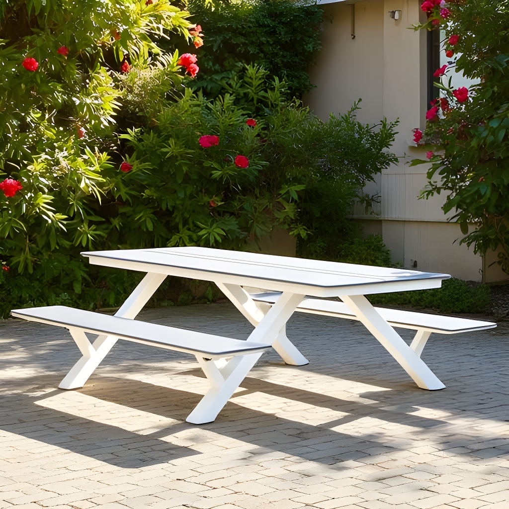 - The HDPE table/bench tops don’t require any waterproofing or sealing, and won’t splinter, crack, chip, peel, stain, or rot and impervious to insects.