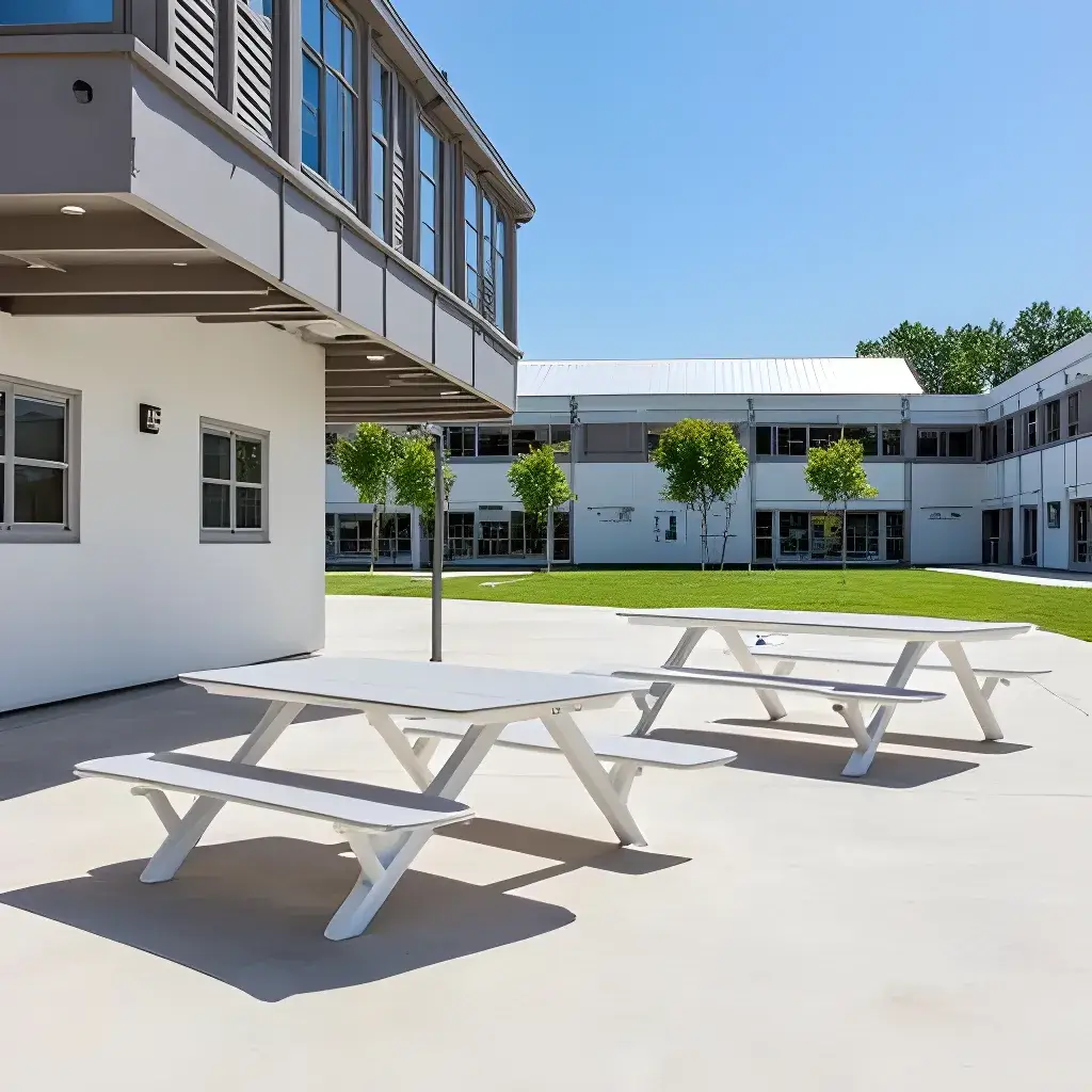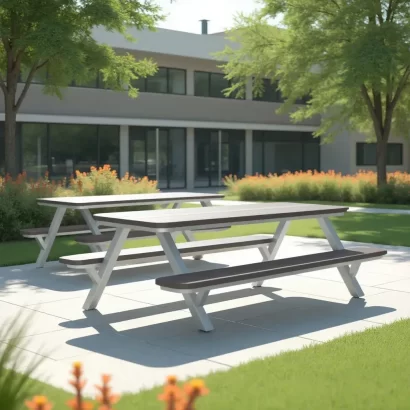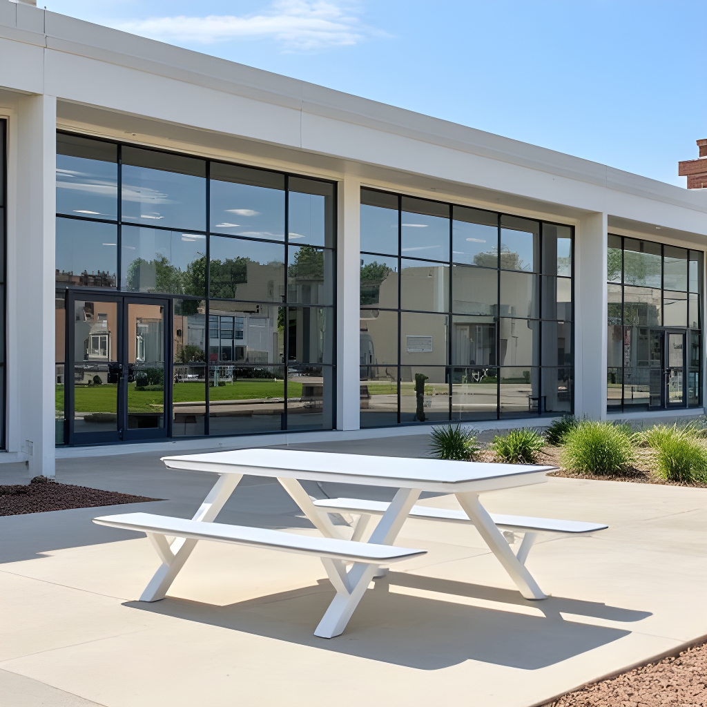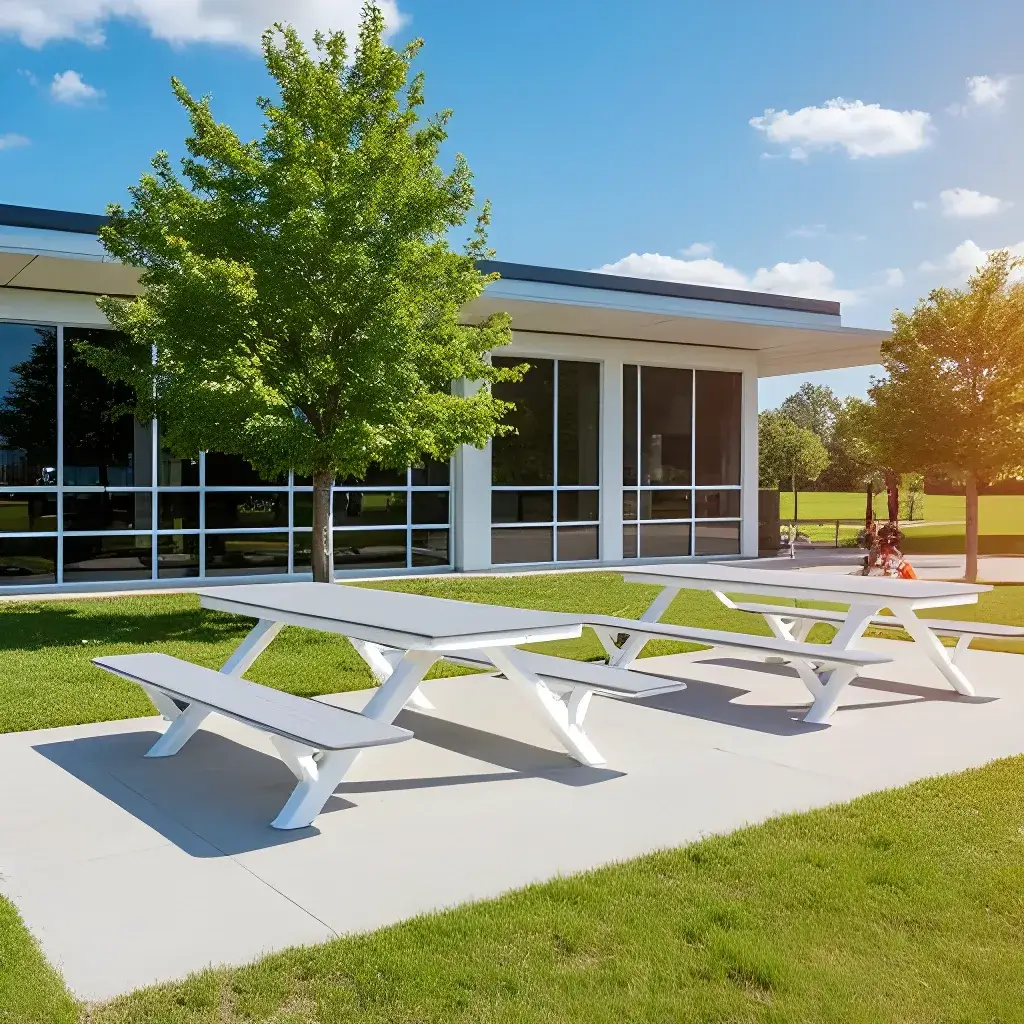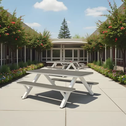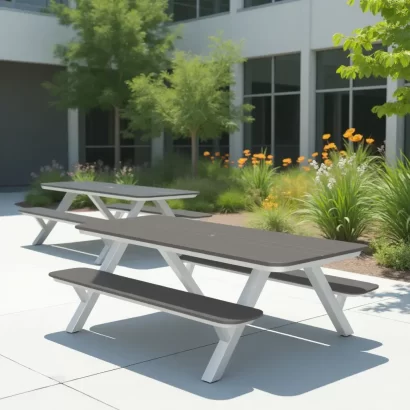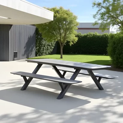 - Table/bench tops are constructed from maintenance-free High-Density Polyethylene (HDPE).