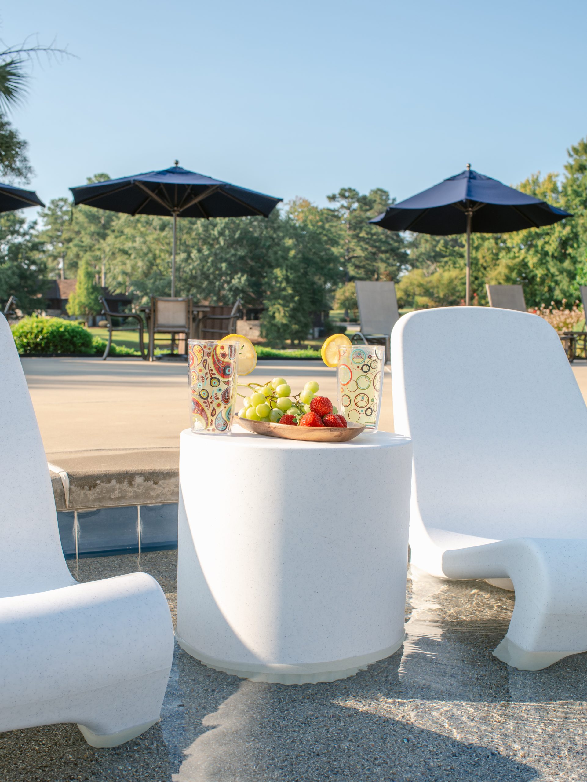 Pair it with The Shayz In-Pool Lounger, Mibster or Moon Chair, The SPLASH Ripple Side Table is perfectly suited for small spaces, pool ledges, and exterior gathering spots- the SPLASH Ripple Side Table does it all!
