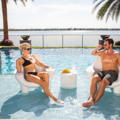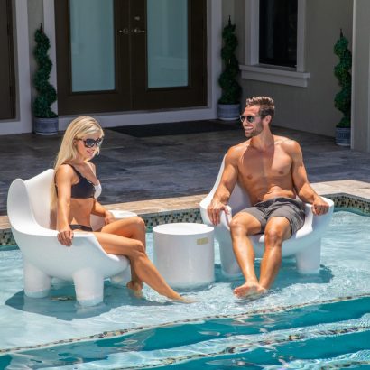 Need extra seating for your gathering? The SPLASH Ripple Side Table contains no metal or rubber parts and can be used in up to 10” of water. Effortlessly, it transforms into a trendy seat or ottoman, providing comfortable and sophisticated options for your guests. Its conveniently located handles make it easy to “pull up a seat” and its compact design and sturdy construction holds up to 300lbs.