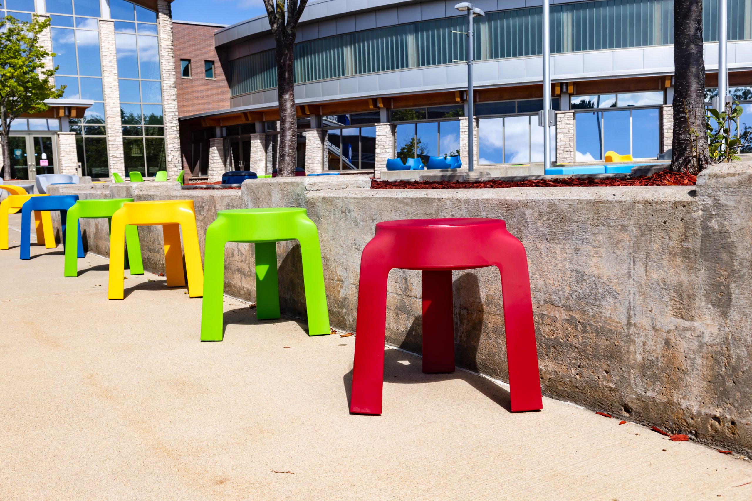 UFO gives you a quick and flexible solution for arranging an outdoor learning environment. This is a great stool for middle school ages to adults. Easy to move, easy to carry, easy to stack, and easy to put into storage at the end of the day.